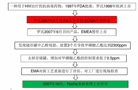 又如某厂家福沙匹坦二甲葡胺原料药合成工艺中最后一步反应又到了重金属Pd,厂家进行了原料药中Pd含量检测,发现确实存在Pd残留10ppm,如果仅以重金属残留或炽灼残渣来控制显然是不科学的,必须单独建立Pd残留的检测方法并验证,根据EMEA/CHMP和FDA相关指导原则,因福沙匹坦二甲葡胺最终制剂为注射剂,显然10ppm的限度使不合理的,根据TTC或PDE法计算限度更加合适,或者限度控制在1ppm更加合理。
